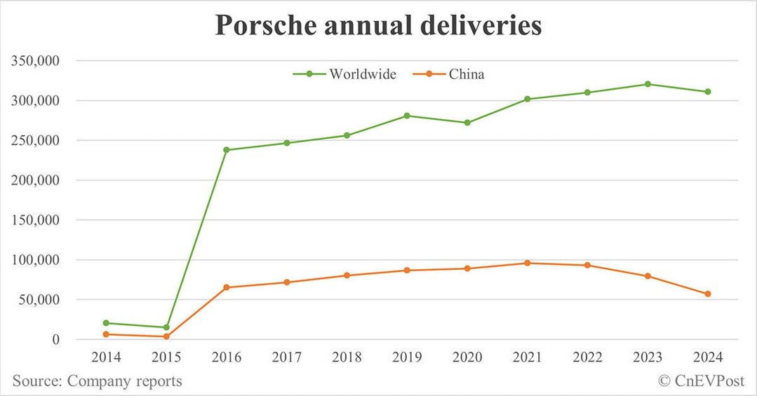 CnEVPost: [https://cnevpost.com/2025/01/13/porsche-2024-deliveries-china-fall/](https://cnevpost.com/2025/01/13/porsche-2024-deliveries-china-fall/)